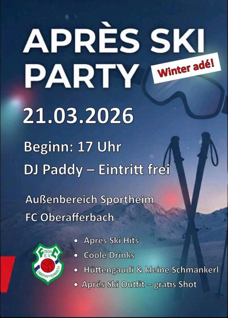 Der FC Oberafferbach möchte satzungsgemäß die Jahreshauptversammlung am Freitag, 04. April ab 19 Uhr im Sportheim des FC Oberafferbach bekanntgeben.